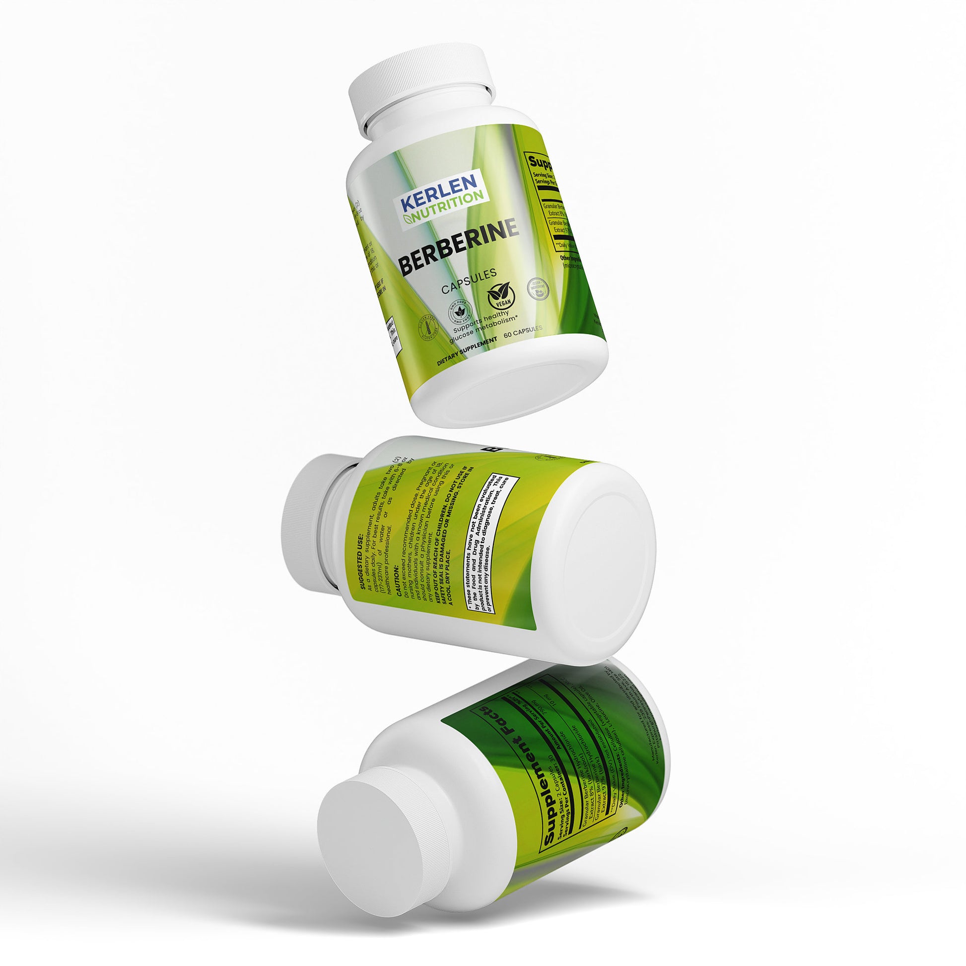 Ingredients: Granular Berberine Hydrochloride Extract 97% (bark), Granular Berberine Hydrochloride Extract 8% (bark/root), Cellulose (vegetable capsule), MCC (microcrystalline cellulose), L-Leucine, Olive Oil.